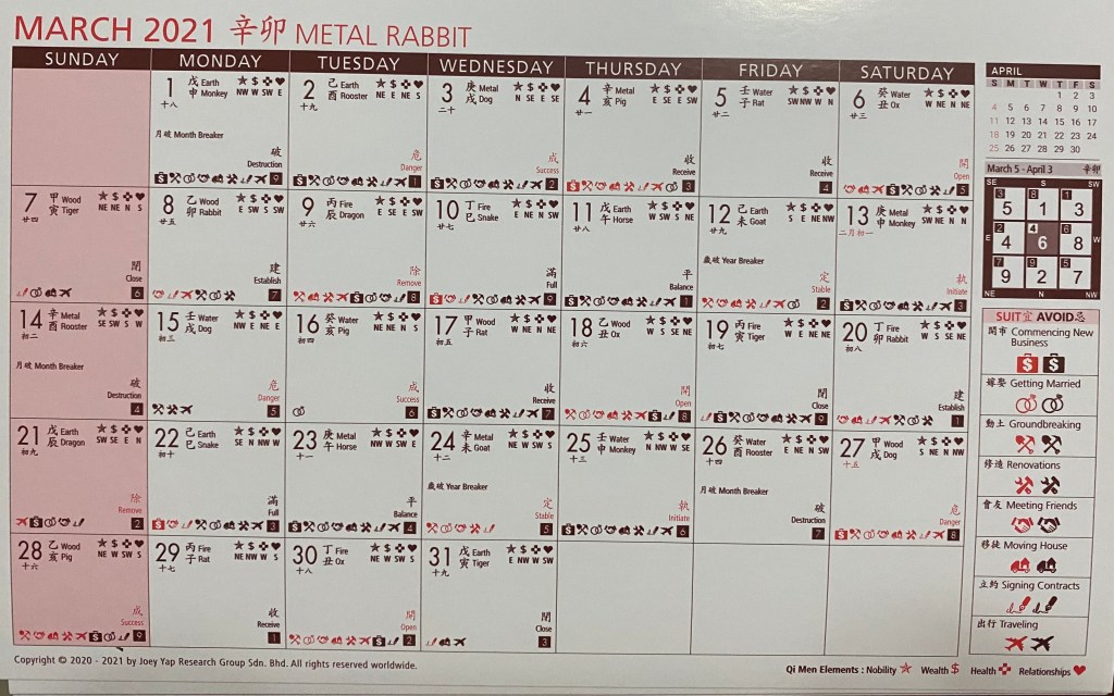 As we are transiting towards the year of the 辛丑 Metal OX on 3 February 2021 22:58hrs. I would like to share some of the special dates which have good energies as well as those not so good dates that we can avoid.